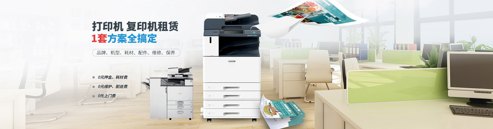 為了提高復印打印輸出效果,降低設備故障率,維新辦公設備所有打印復印機出租的辦公設備都使用原廠的耗材。